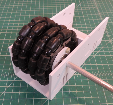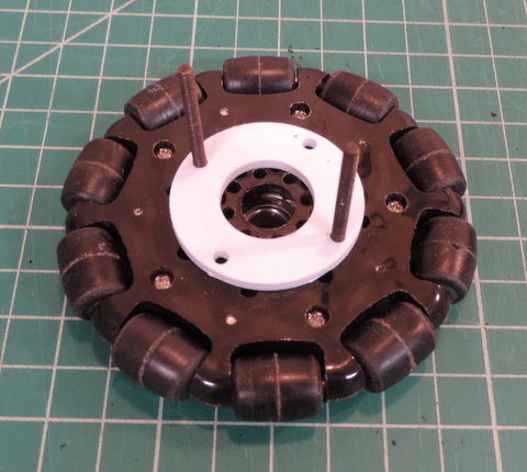 Align the second wheel so that' it's Omni Bearing are centered between the ones of the first wheel. | Modify and Assemble a second set of wheels (Actually 3 more sets!) Install on your axle with the flat head screws in the center. |