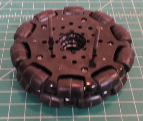 VEX Robotics posted this on it's Omni-Directional Wheels web page: "New for the 2019 FTC / FRC season, we've redesigned the 4” Omni-Directional Wheel to have a similar construction style to our 3.25” Omni-Directional Wheel. We decreased the number of rollers, to reinforce the body and improve the strength during sideways impacts. Don’t worry, it’s only a little wider than the current 4” Omni-Directional Wheel, and should still fit anywhere you were currently using a 4” wheel before". [emphasis mine]. Well, that's not quite true!!! The V1 Omni Wheel was 1.344 wide or 2.688 for the pair (not allowing for the spacer between them) while the V2 Omni Wheel is 1.53 wide or 3.06 for the pair (also not allowing for the spacer between them) and will be an impossibly tight fit in the 3.1 space of the SAK Center foot. [follow the links above for copies of the original VEX drawings]. There are several options. First, if you like the V2 version of the VEX Omni Wheel, you can use just a single wheel set front & back. You'll need to revise the spacers on the bolt/axle to center the single wheel in the SAK mounting. It won't provide the same stability or smoothness that a 4 wheel center foot would have. The other alternative is to find another Omni Wheel supplier. What follows is the list of suppliers that I've researched. If you just want to see the "solution" jump here.| Left: